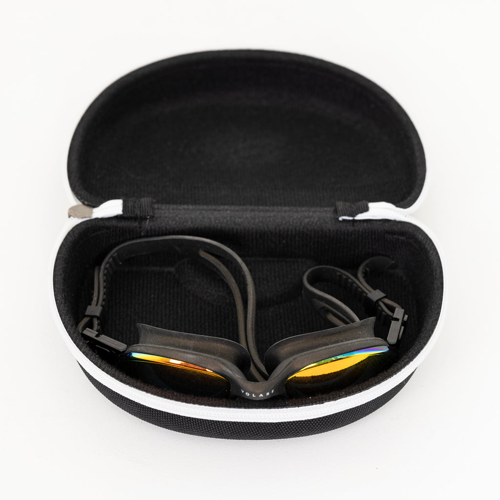 Comes standard with free premium EVA protective swim goggle case